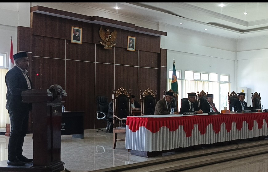 Dari pihak eksekutif, hadir Bupati La Hamidi, Wakil Bupati Gerson Selsily, Sekda Hadi Longa, serta sejumlah pimpinan Organisasi Perangkat Daerah (OPD). Hadir pula insan pers dan para undangan, yang menjadi saksi jalannya sidang penuh makna untuk kemaslahatan Masyarakat di Bursel, Rabu 1/10/2025.(LM-03)