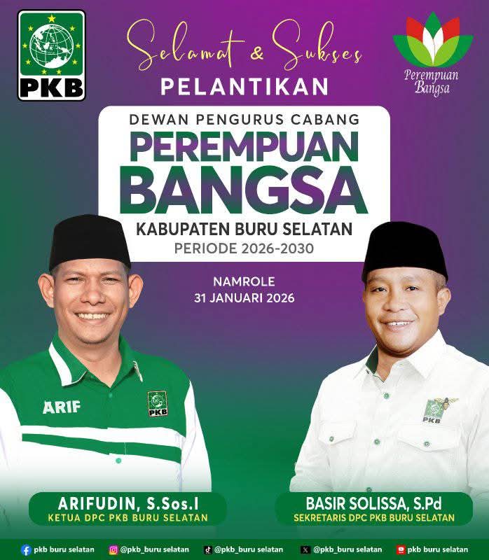 Ia juga berharap kepengurusan yang baru dilantik dapat segera bekerja, membangun sinergi dengan struktur PKB, serta berkontribusi nyata dalam mendukung program-program kerakyatan di Kabupaten Buru Selatan, tandasnya.