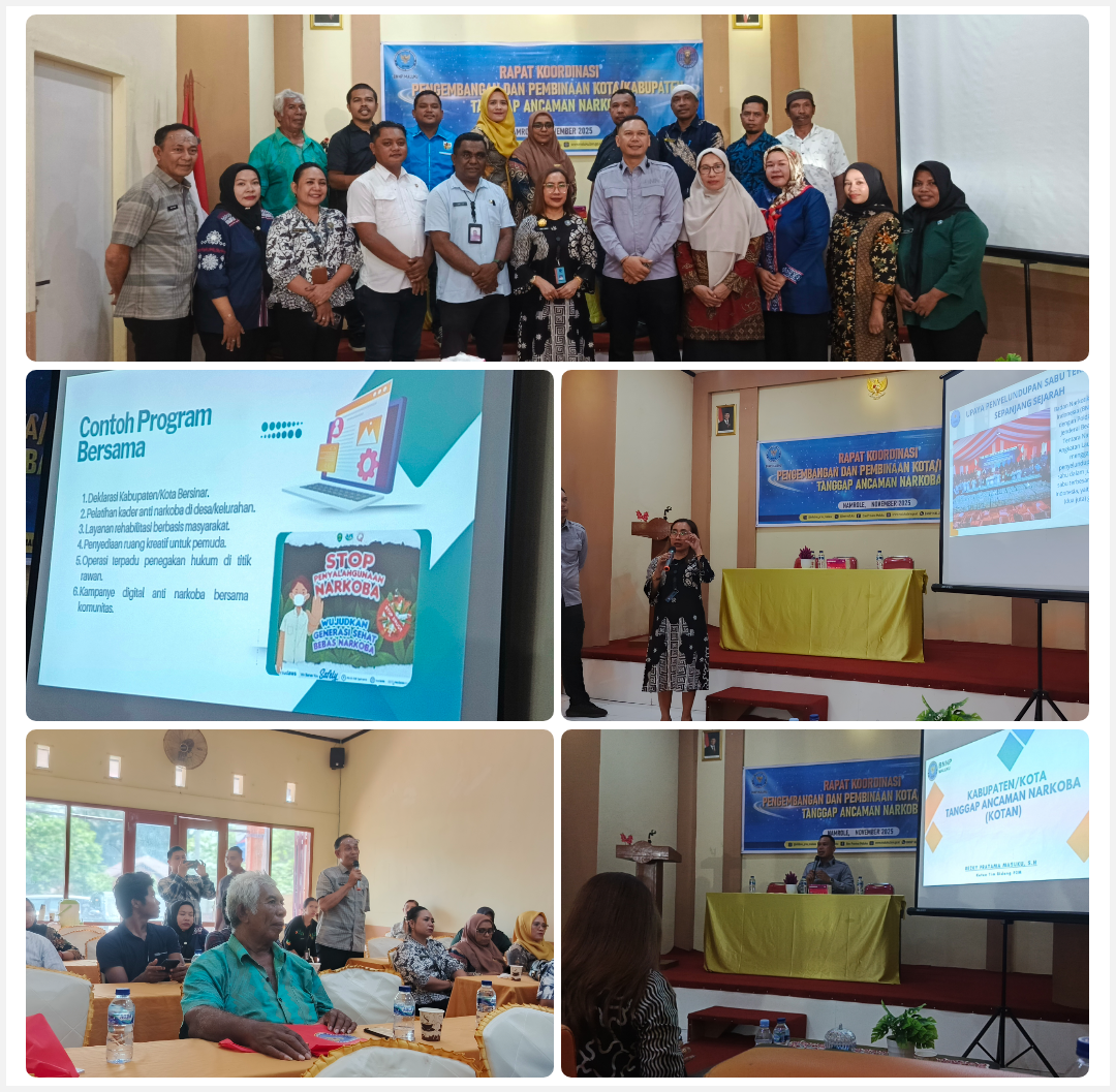 Dia mengatakan, rakor ini merupakan media komunikasi bagi BNNK Bursel untuk berkoordinasi, bersinergi dan bekerjasama dengan Pemerintah Daerah, jajaran Kepolisian, TNI, Tokoh Masyarakat, Ormas dan OKP dalam menangani ancaman bahaya narkoba di tingkat daerah.