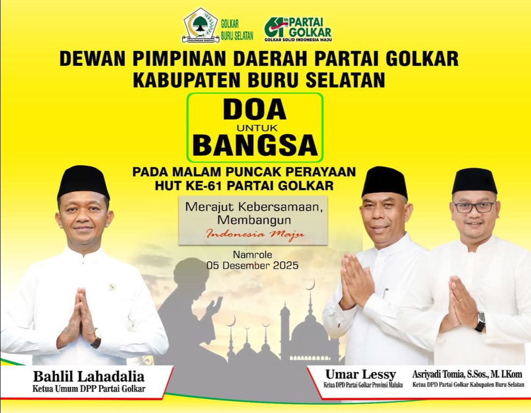 “Atas nama DPD Golkar Bursel, saya menyampaikan terima kasih kepada Bupati Bursel La Hamidi dan seluruh tamu undangan yang telah berpartisipasi,” ujarnya.