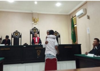 Lensa Maluku – Hakim Pengadilan Negeri (PN) Namlea, Iksan Diaji menasehati Srafifudin Pellu, pelaku penganiayaan wartawan, Bernardus Aponno di Namrole,...