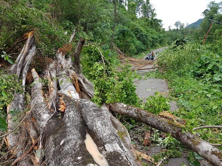 Bukan itu sejumlah pohon besar tumbang ditengah jalan, tepatnya di jalan dari arah pasar menuju PLN Namrole dan sekitar berlokasi di Desa Wali, Namrole.