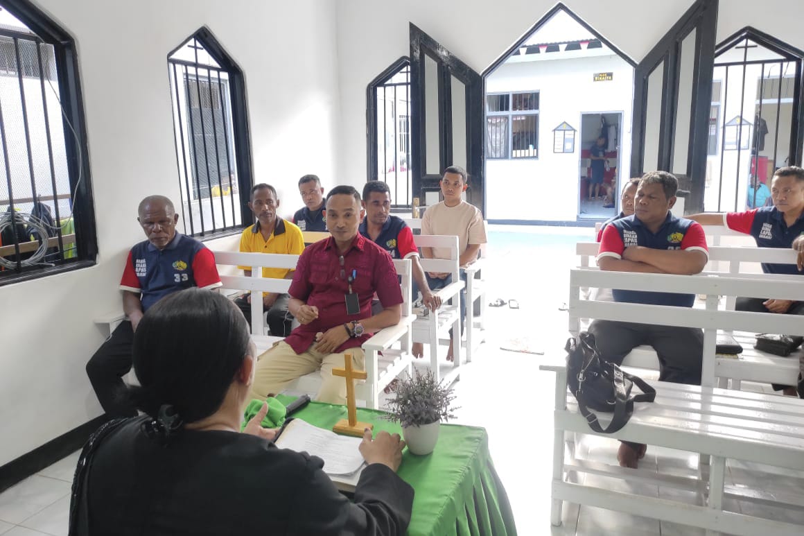 Lensa Maluku, – Lembaga Pemasyarakatan (Lapas) Kelas III Wahai mendapat kunjungan pastoralia dari Majelis Jemaat Gereja Protestan Maluku (GPM) Jemaat Bethsan, Kamis (25/9). Kegiatan tersebut merupakan bagian dari pelayanan bagi Warga Binaan Kristen Protestan dalam persiapan mengikuti ibadah Perjamuan Kudus Oikumene pekan depan.