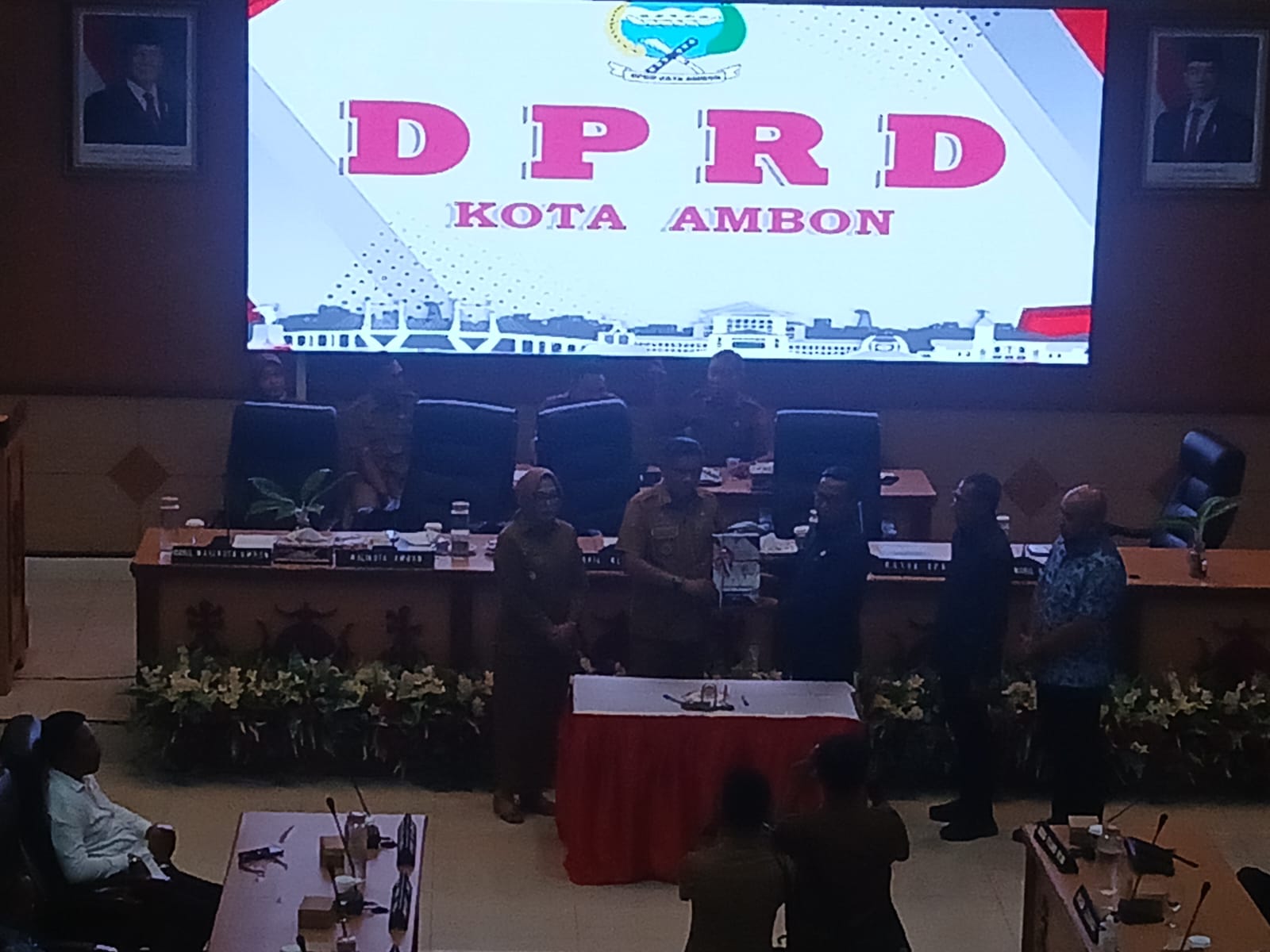 Rapat yang berlangsung di ruang sidang utama DPRD Kota Ambon tersebut dipimpin oleh unsur pimpinan dewan dan dihadiri oleh jajaran eksekutif, forkopimda, serta para pemangku kepentingan lainnya.