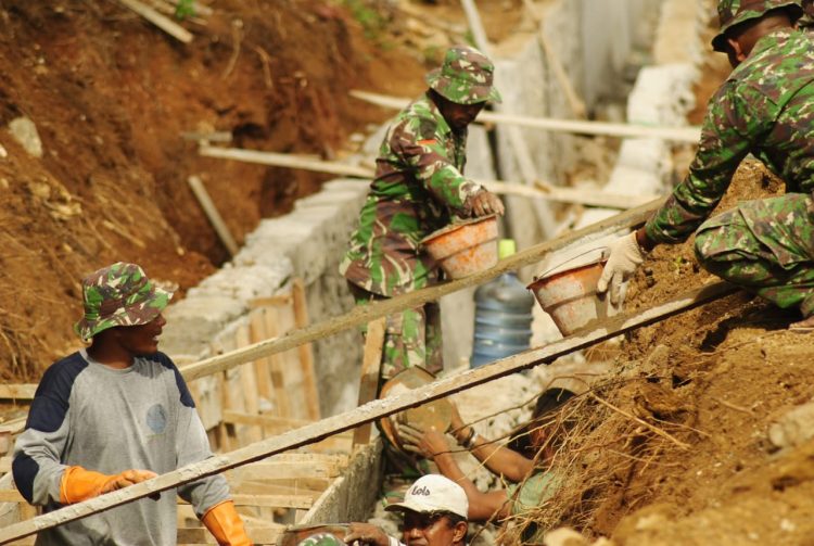Namrole – TIM Satgas TNI Manunggal Membangun Desa (TMMD) ke-104 Kodim 1506/Namlea Kecamatan Namrole Kabupaten Buru Selatan (Bursel) terus berpacu dengan waktu. Disisa waktu kurang lebih tujuh hari lagi kegiatan TMMD akan berakhir, Satgas meningkatkan pekerjaan fisik.