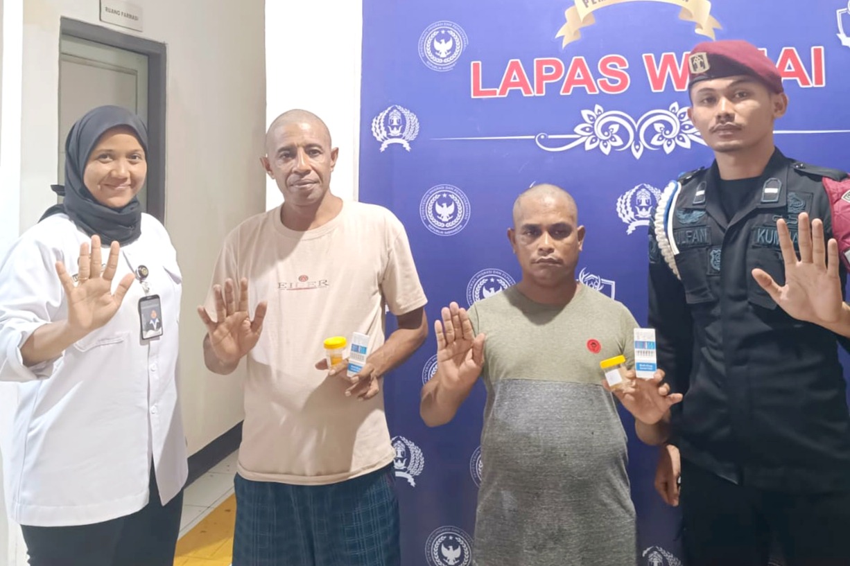 “Setiap Tahanan baru yang masuk wajib melalui tahapan pemeriksaan sesuai Standar Operasional Prosedur (SOP) yang berlaku di Lapas Wahai. Tes urine ini adalah instrumen wajib dalam skrining awal kesehatan dan keamanan. Kami memastikan seluruh proses pengambilan sampel hingga pemeriksaan dilakukan secara transparan dan sesuai aturan untuk menjamin keakuratan hasil serta menjaga lingkungan Lapas tetap kondusif,” jelas Fitri. Ia pun menambahkan bahwa hasil tes urine dari kedua Tahanan tersebut negatif atau bersih dari narkoba.